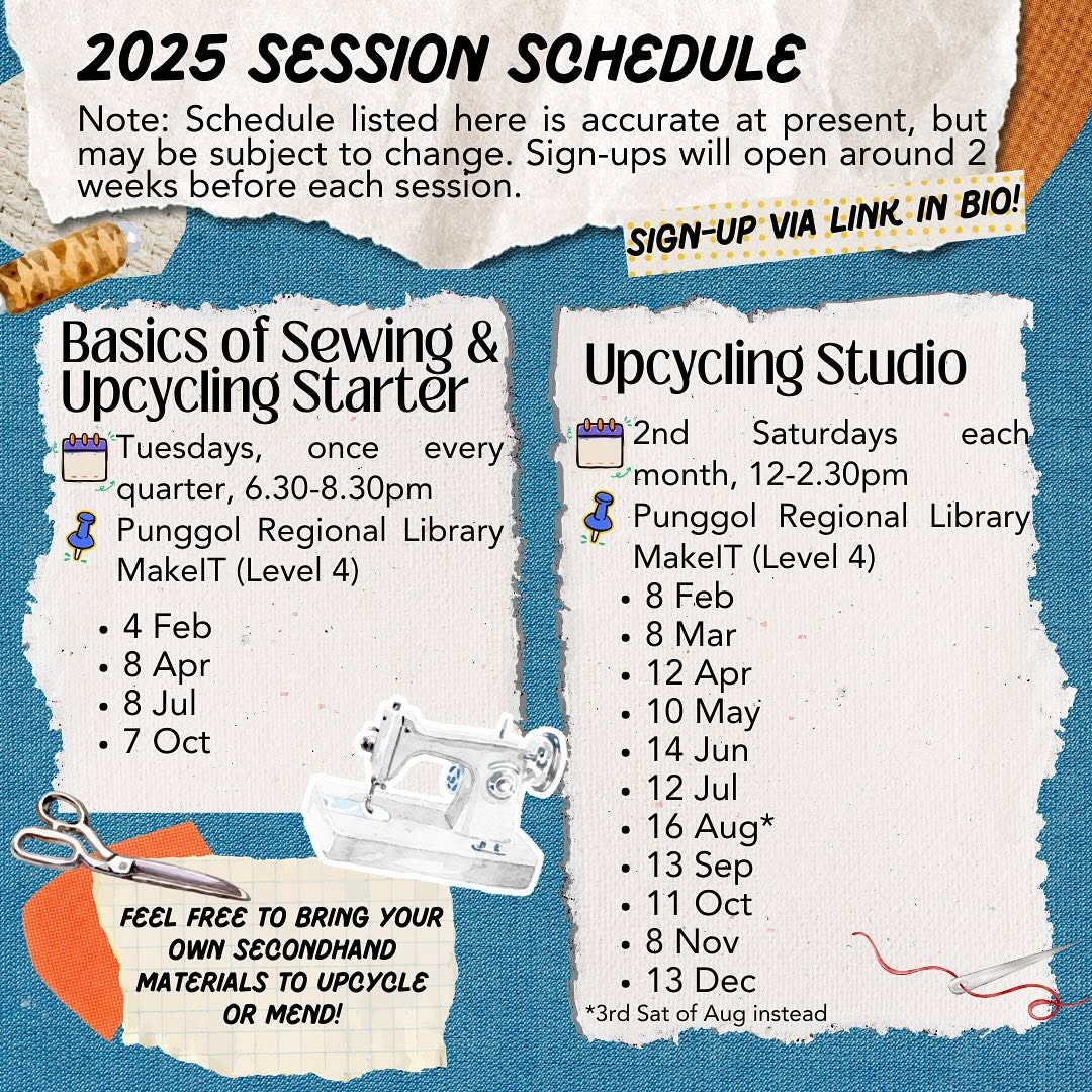 Sew & Steady is back! d We’re excited to announce our upcoming sessions at Punggol Regional Library starting next month, Choose the most suitable session for you to start learning, and head over to the link in our bio to sign up. See you there