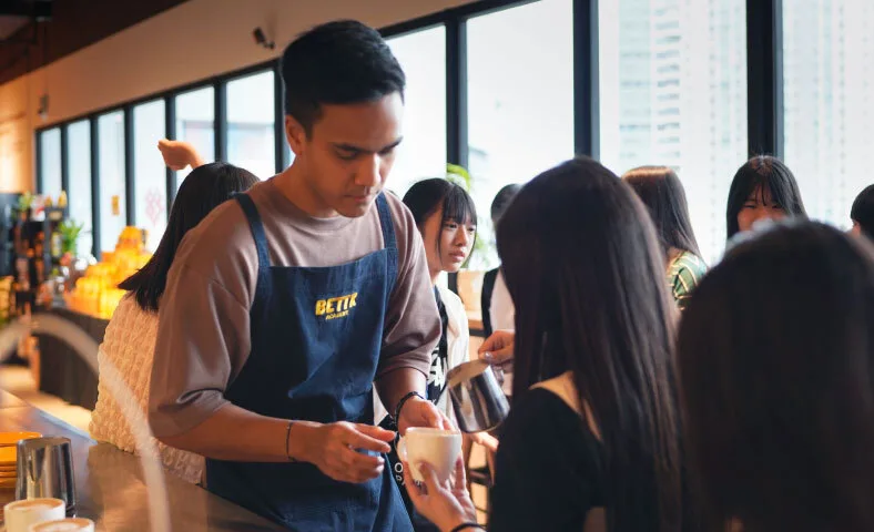 At its core, Bettr operates two main arms: Bettr Academy and Bettr Coffee. Bettr Academy is a leading beverage education provider, offering training in coffee, tea, and hospitality. As a registered training provider with SkillsFuture Singapore, it delivers both professional and lifestyle courses — while also offering holistic support for marginalised individuals.