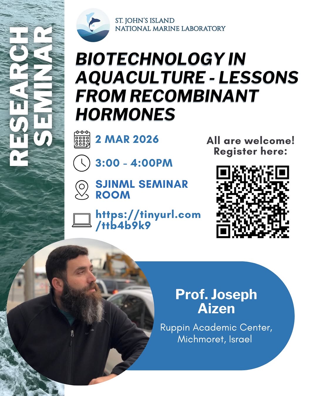 Prof. Joseph Aizen will be presenting a talk titled ‘Biotechnology In Aquaculture – Lessons from Recombinant Hormones’