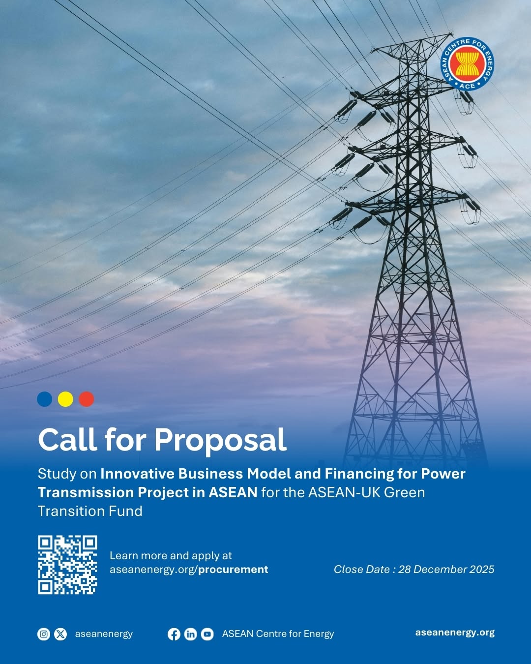 The ASEAN Centre for Energy (ACE) is seeking proposals for Study on Innovative Business Model and Financing for Power Transmission Project in ASEAN for the ASEAN-UK Green Transition Fund.