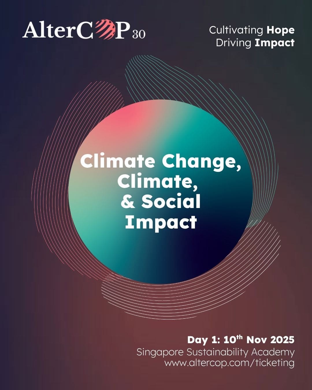 Join AlterCoP 30 in Singapore from 10 – 22 Nov at Singapore Sustainability Academy (City Square Mall, level 6).