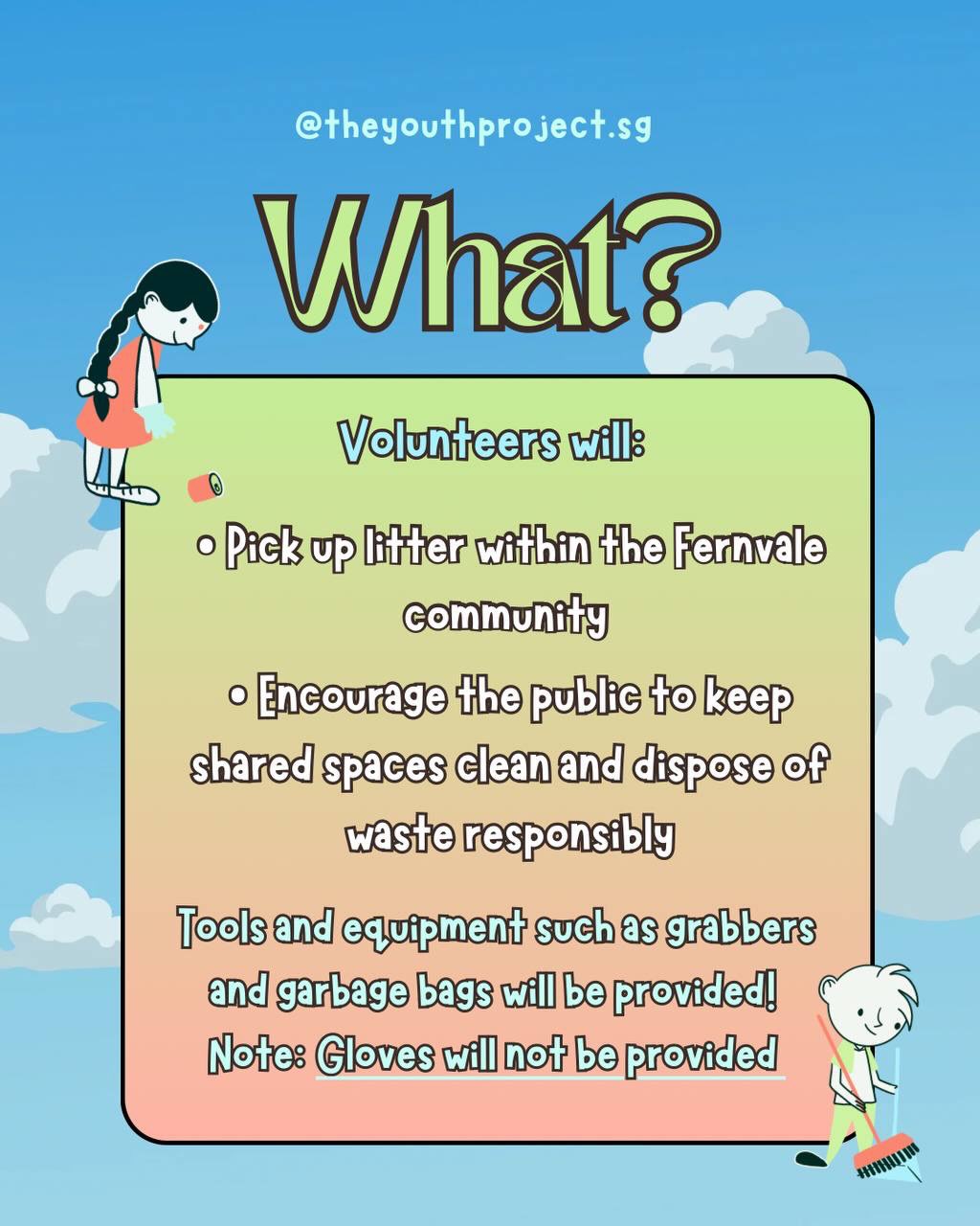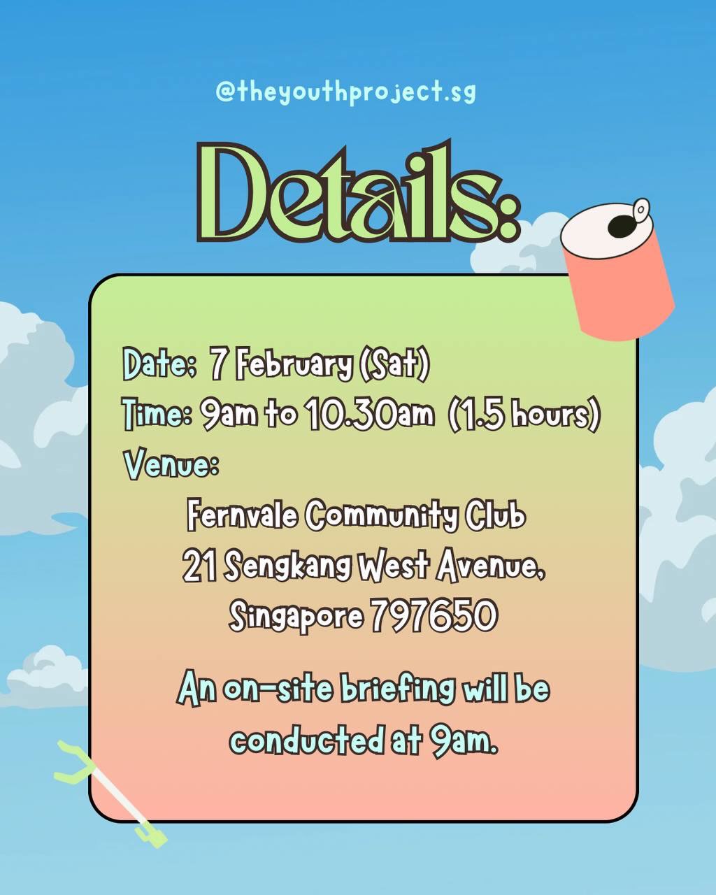 Join us for a community clean-up with Stridy 🎉 and spend your Saturday connecting with others while making a real impact in Fernvale Community! ✨