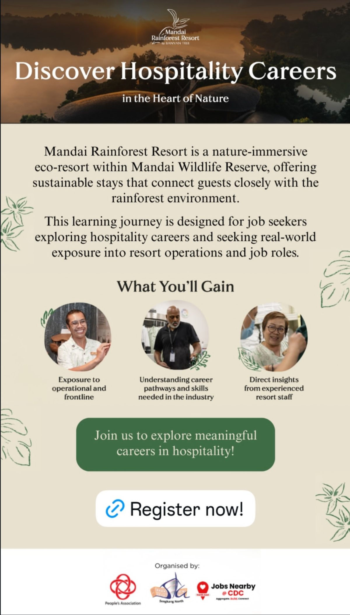 Venue: Gather at Sengkang CC for a bus ride to Mandai Rainforest Resort