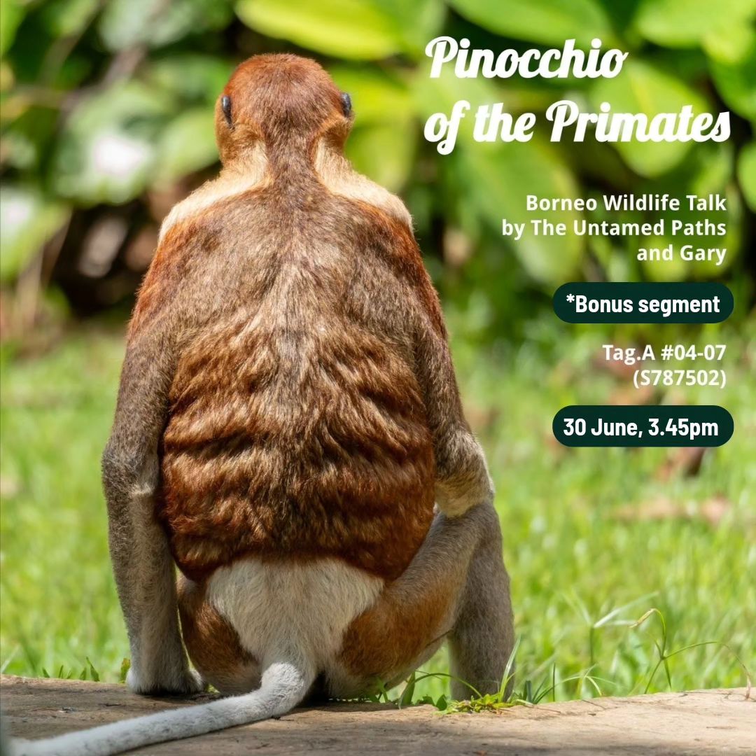 Join us this Sunday for an afternoon of insightful nature conversations with Noelle, Xiaoyun, and Pamela from The Untamed Paths! Also, enjoy a bonus segment by our enthusiastic volunteer Gary on his Borneo Expedition (Kuching, Sarawak) for the Proboscis Monkey!