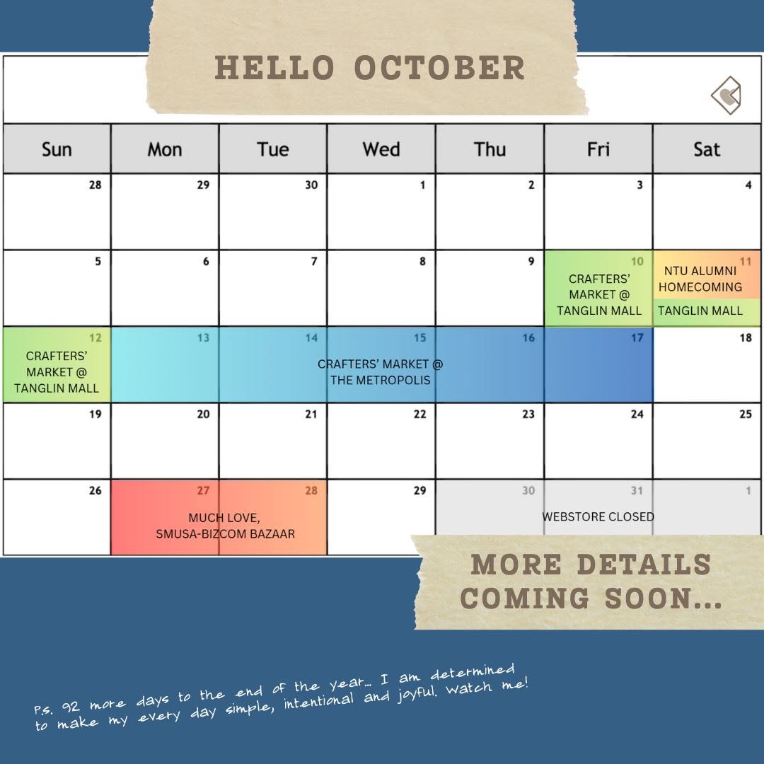 Hello October.. Every time I hit the last quarter of the year, there is an unspoken urgency to go through my to-do list and scramble to finish the unfinished businesses (ownself stress ownself ). Looking back at my September schedule, I probably started earlier this year Let’s jump into the last 92 days of the year!