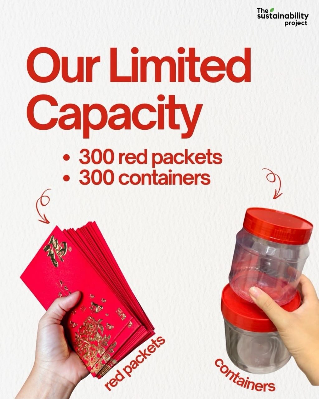In 2022, we decided to save the iconic red containers because of the crazy amount of waste we knew was going to come about from Lunar New Year and I just cannot bear for Semakau Landfill to fill up any faster.