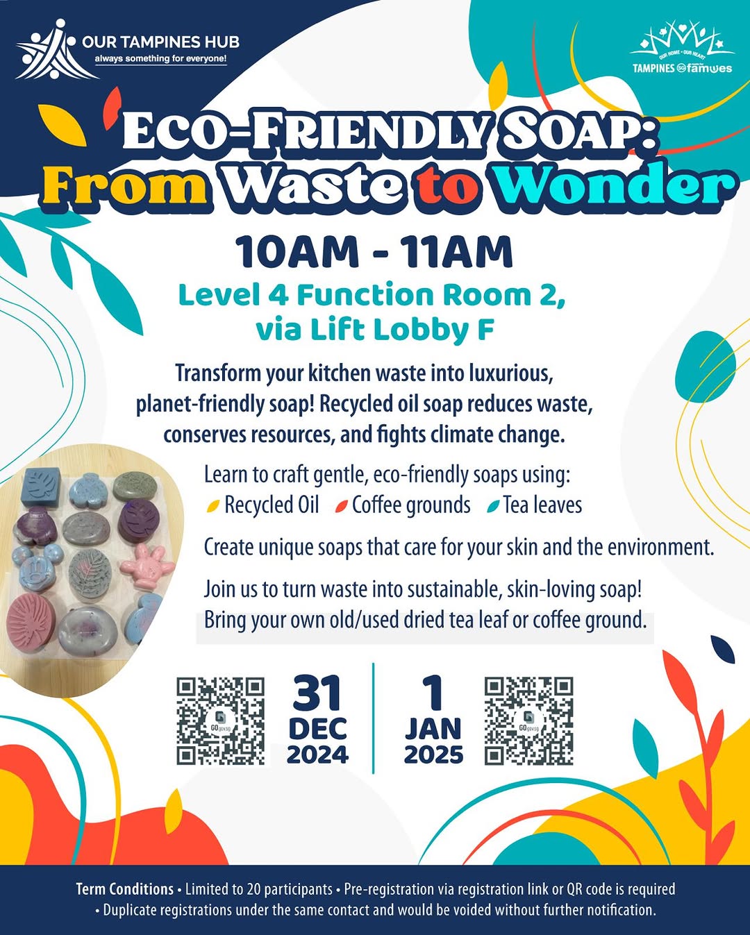 Use recycled oil, coffee grounds, and tea leaves ○ Reduce waste and combat climate change ○ Create unique, skin-friendly cleansers Bring your own used dried tea leaves or coffee grounds. Start 2025 with clean hands and a greener conscience!
