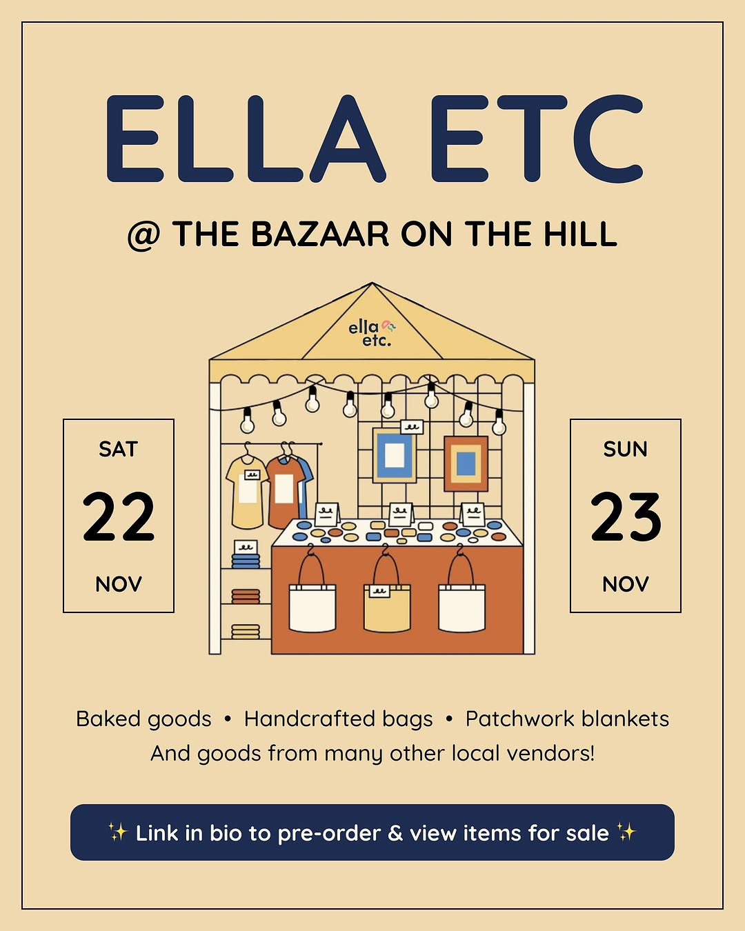 Use link in bio to view some of the things we’ll have on sale (most items are one-of-a-kind so once sold there’l be no more!) and also to pre-order your baked goods