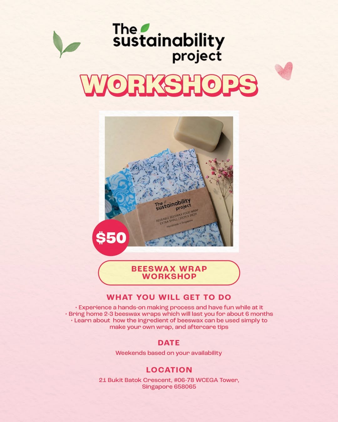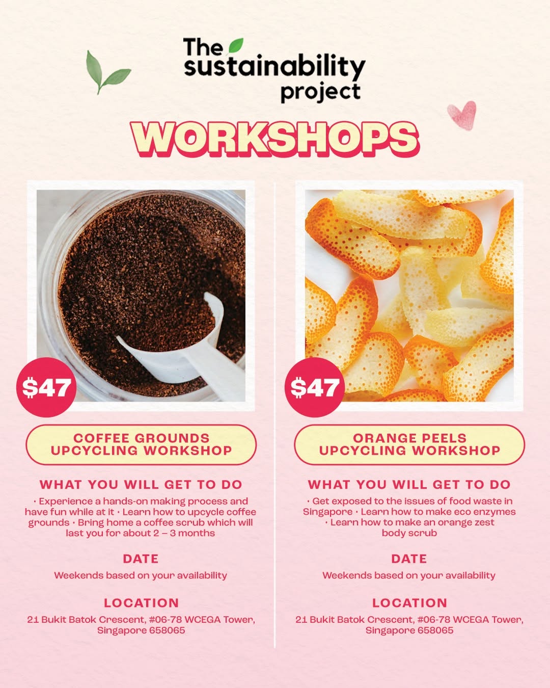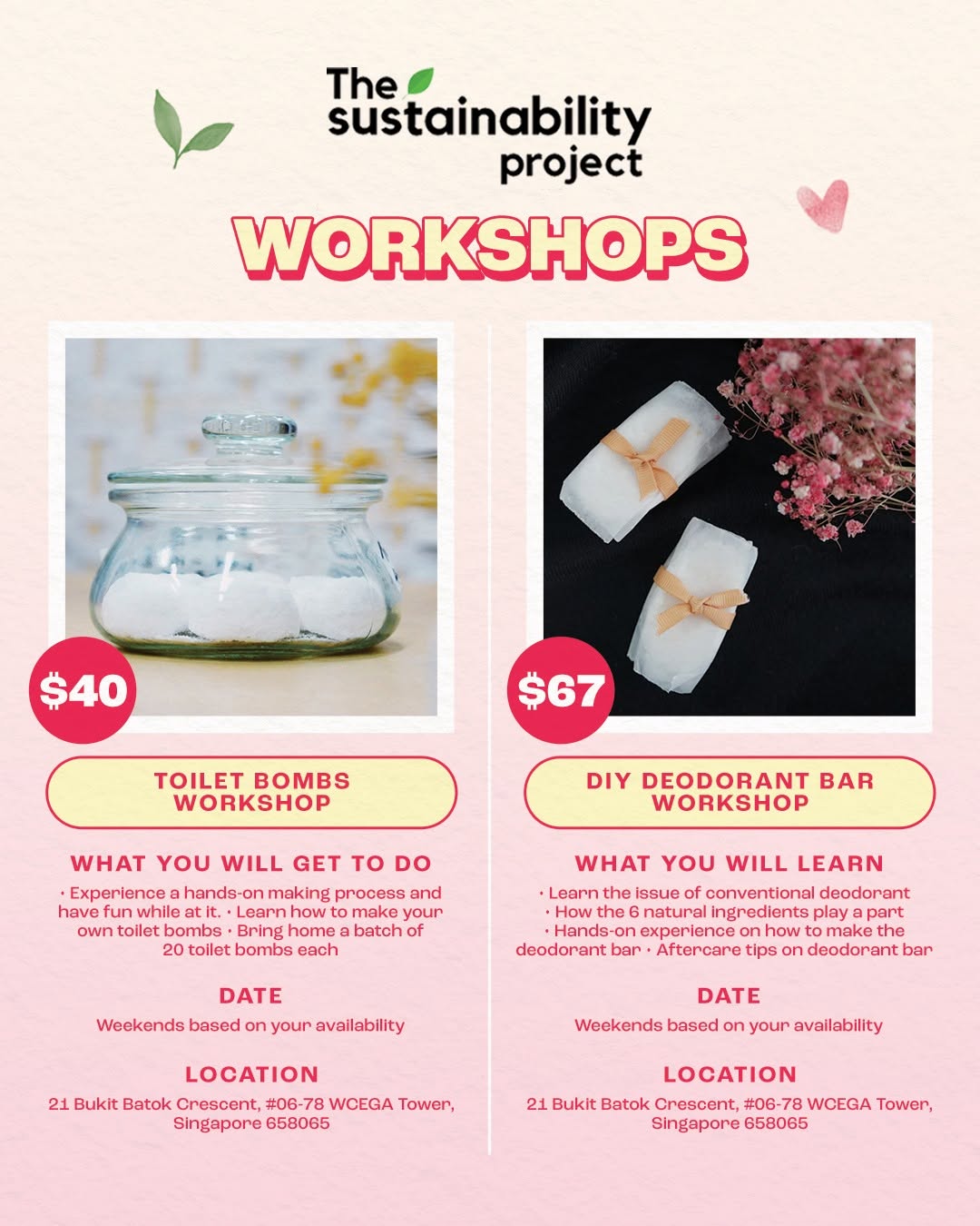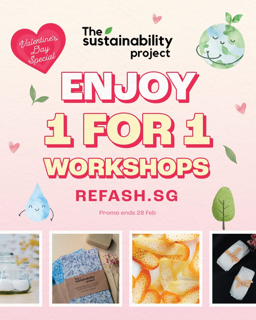 Still searching for the perfect Valentine’s Day date idea? Skip the usual dinner plans and create something meaningful together with @ thesustainabiltyproject’s exclusive 1-for-1 workshops! From upcycling coffee grounds to making deo dorant bars from natural ingredients, you and bae can learn, laugh, and DIY your way to a more sustainable lifestyle