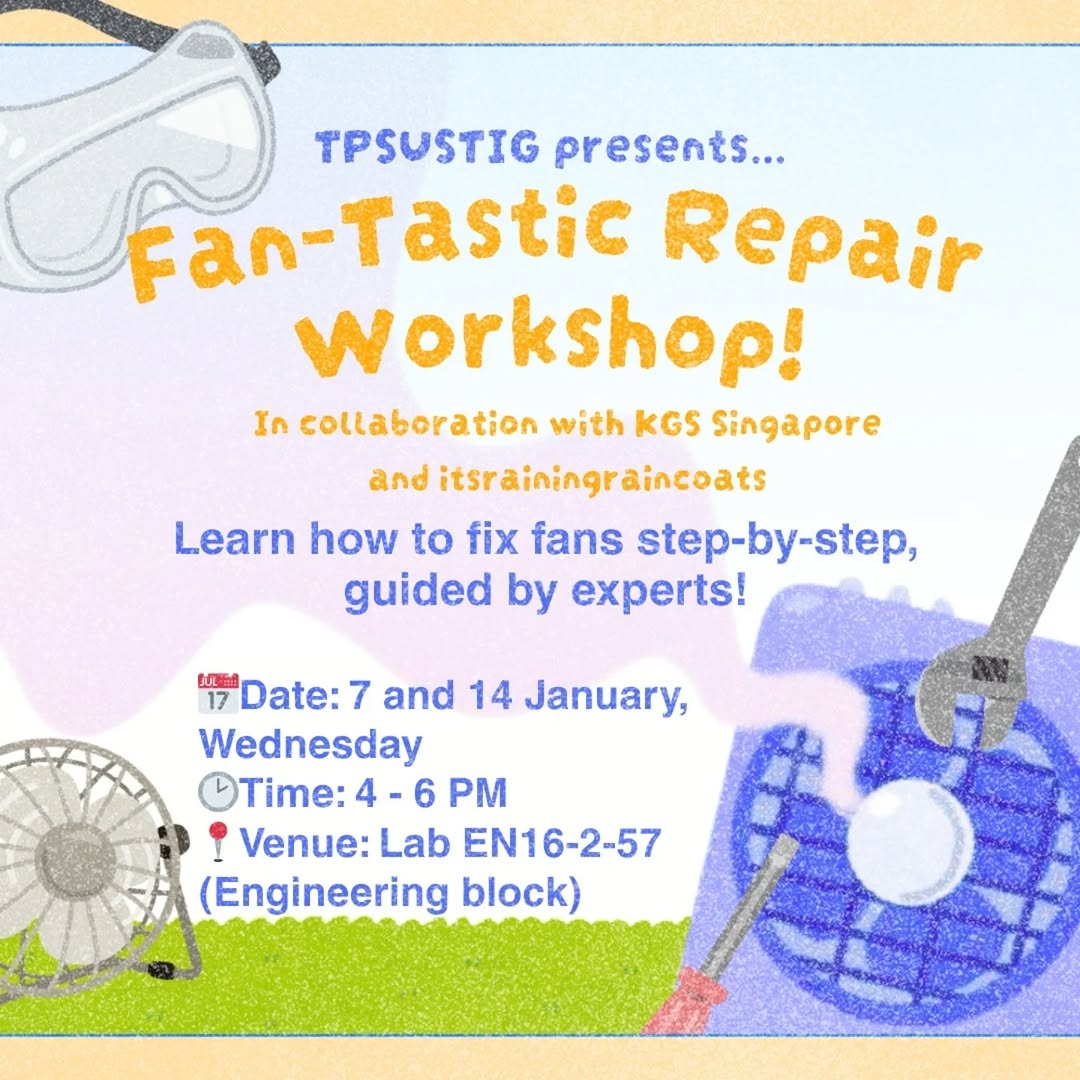 Join us for our first-ever Fan-Tastic Repair Workshop! Learn about the basic techniques of fan repair taught by experts ⚙️ 🔧and how you can contribute to reducing e-waste!