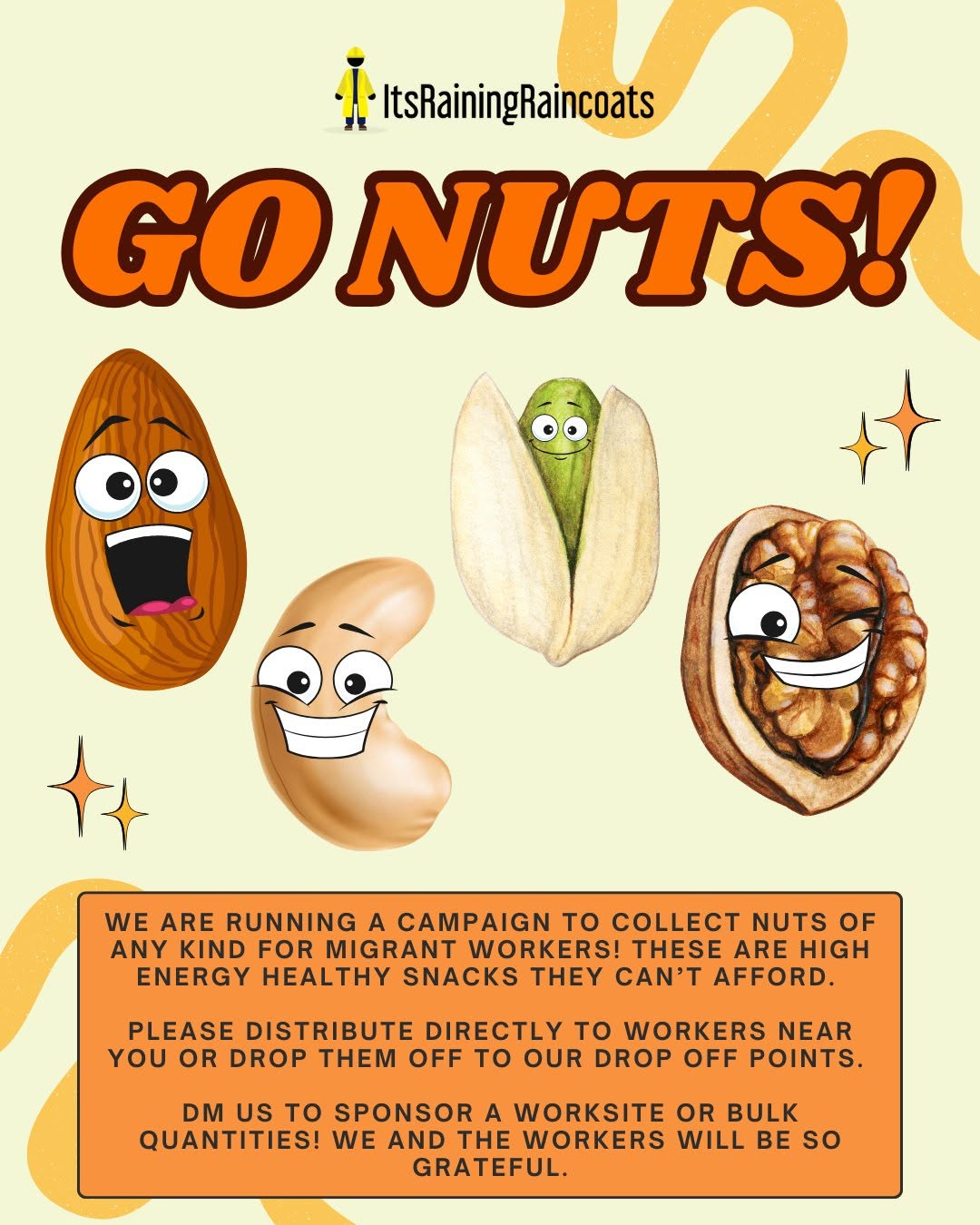 We’re running a campaign to collect nuts of any kind for our migrant workers! These high-energy, healthy snacks are a real boost – and something many workers can’t easily afford.