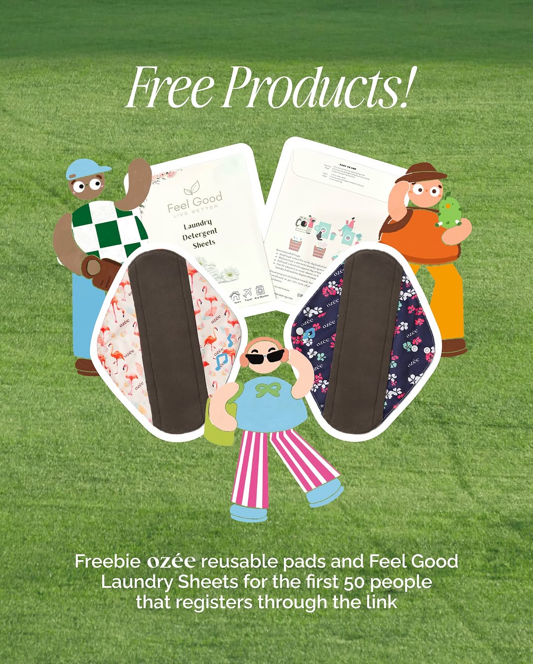 Get a free OZÉE reusable pad + Feel Good Laundry Detergent Sheets – for the first 50 people who registers through our link