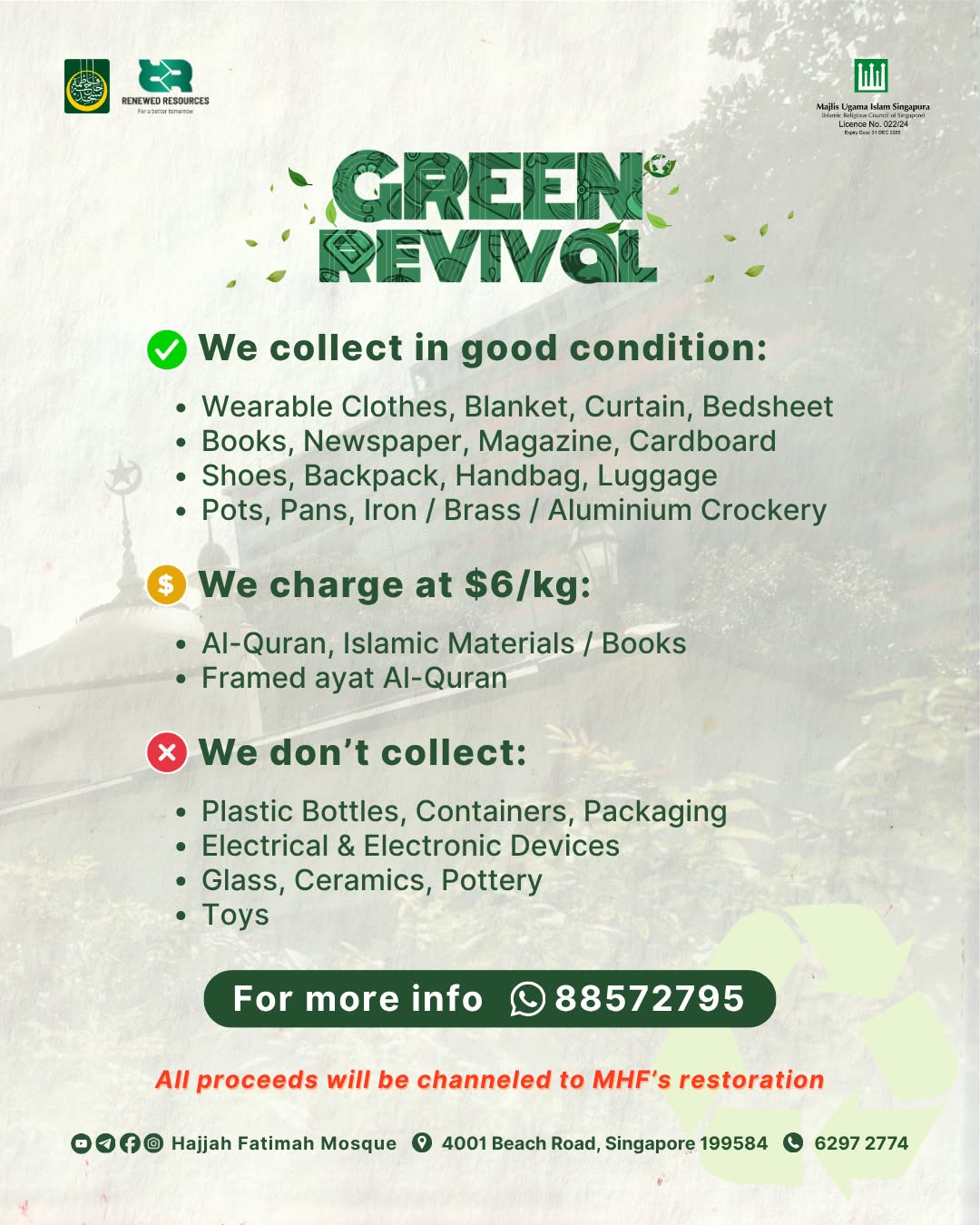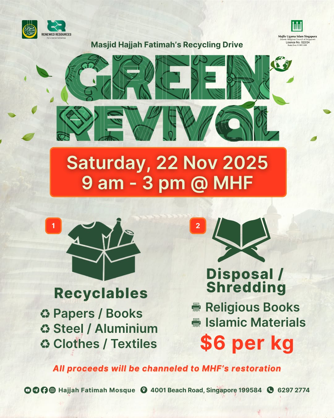 Join us for Masjid Hajjah Fatimah’s Recycling Drive in collaboration with Renewed Resources