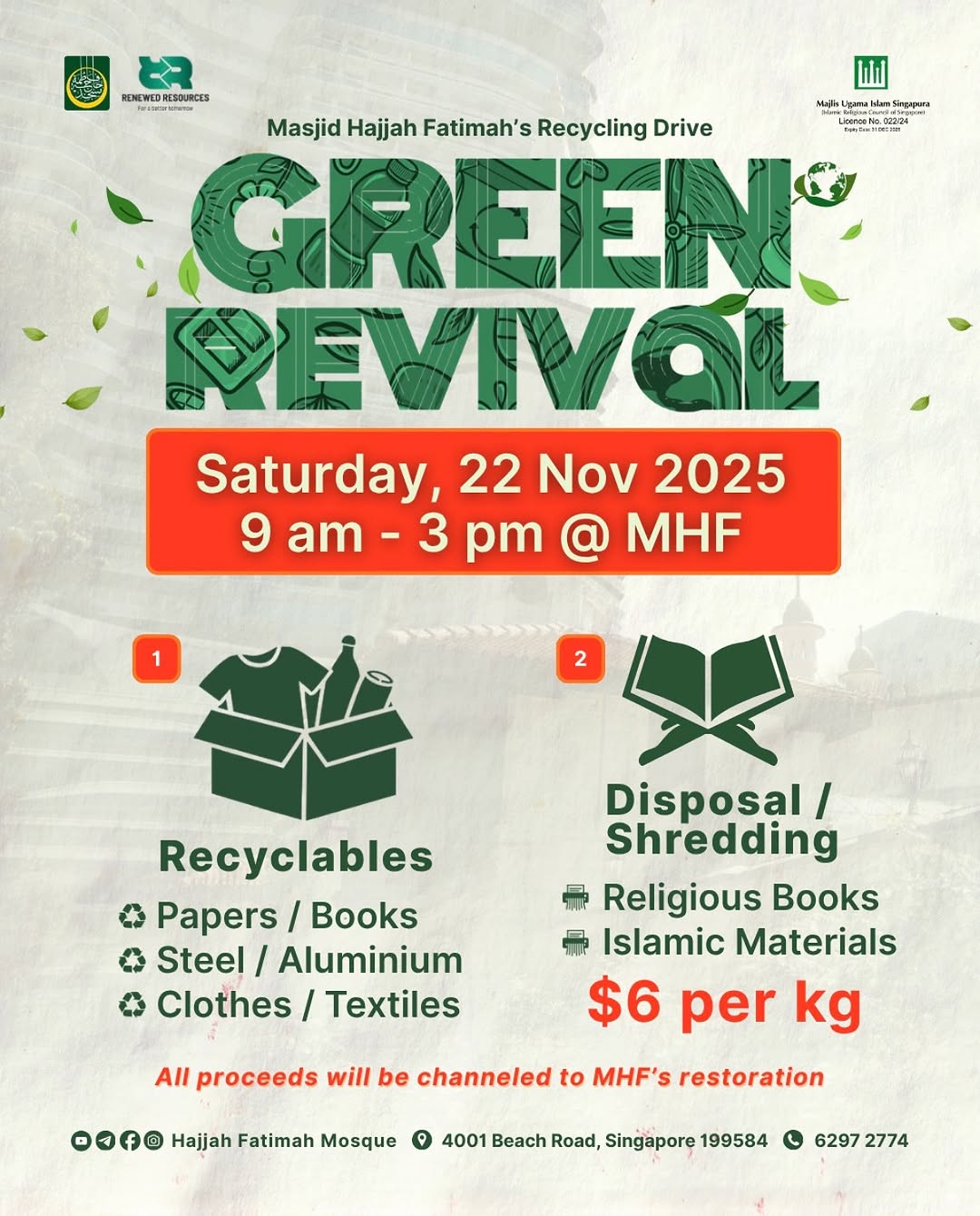Join us for Masjid Hajjah Fatimah’s Recycling Drive