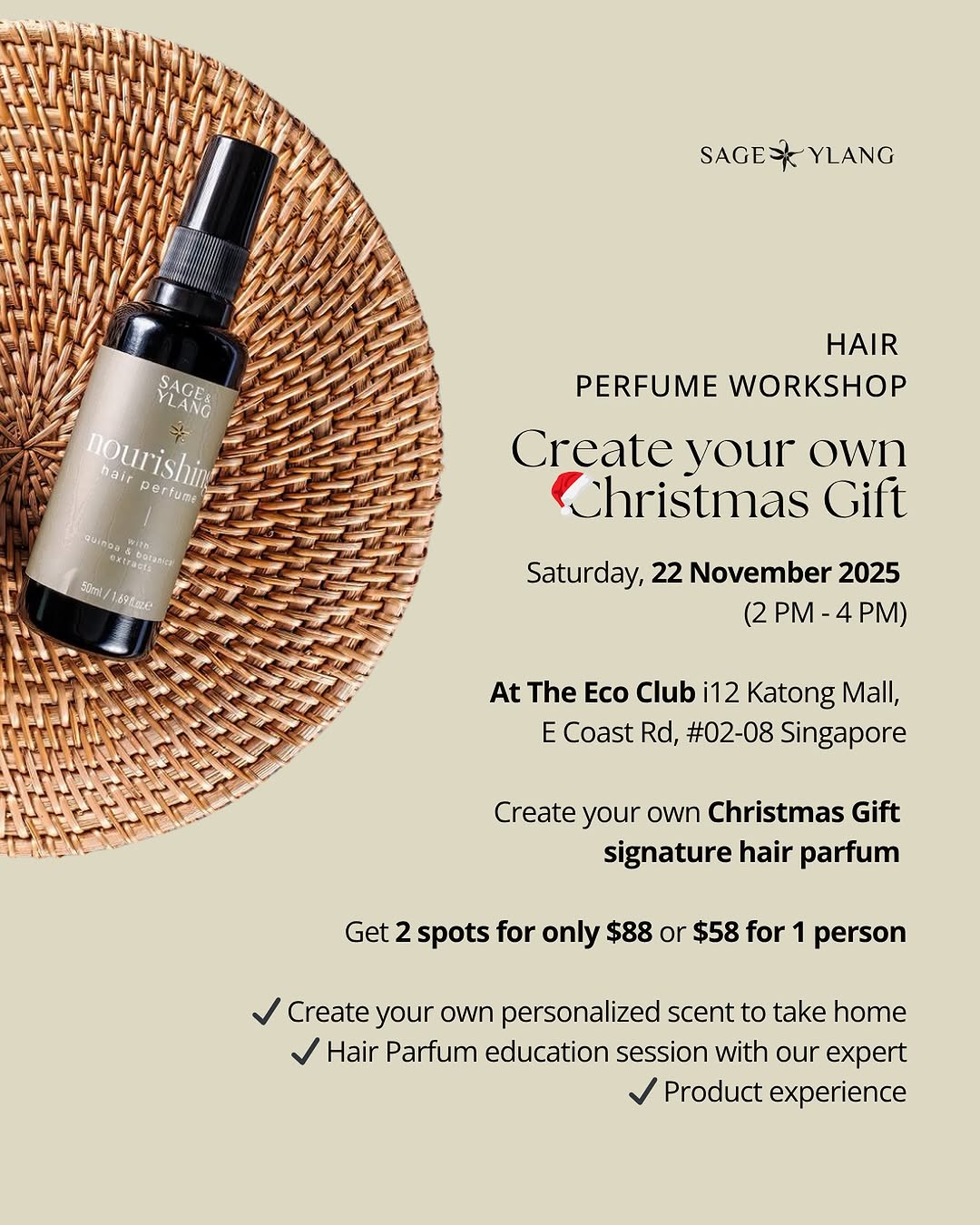 Join us for a fun, creative workshop where you’ll learn how to blend your own signature hair scent – the perfect way to relax, learn, and create something beautifully perfect for the holiday season.
