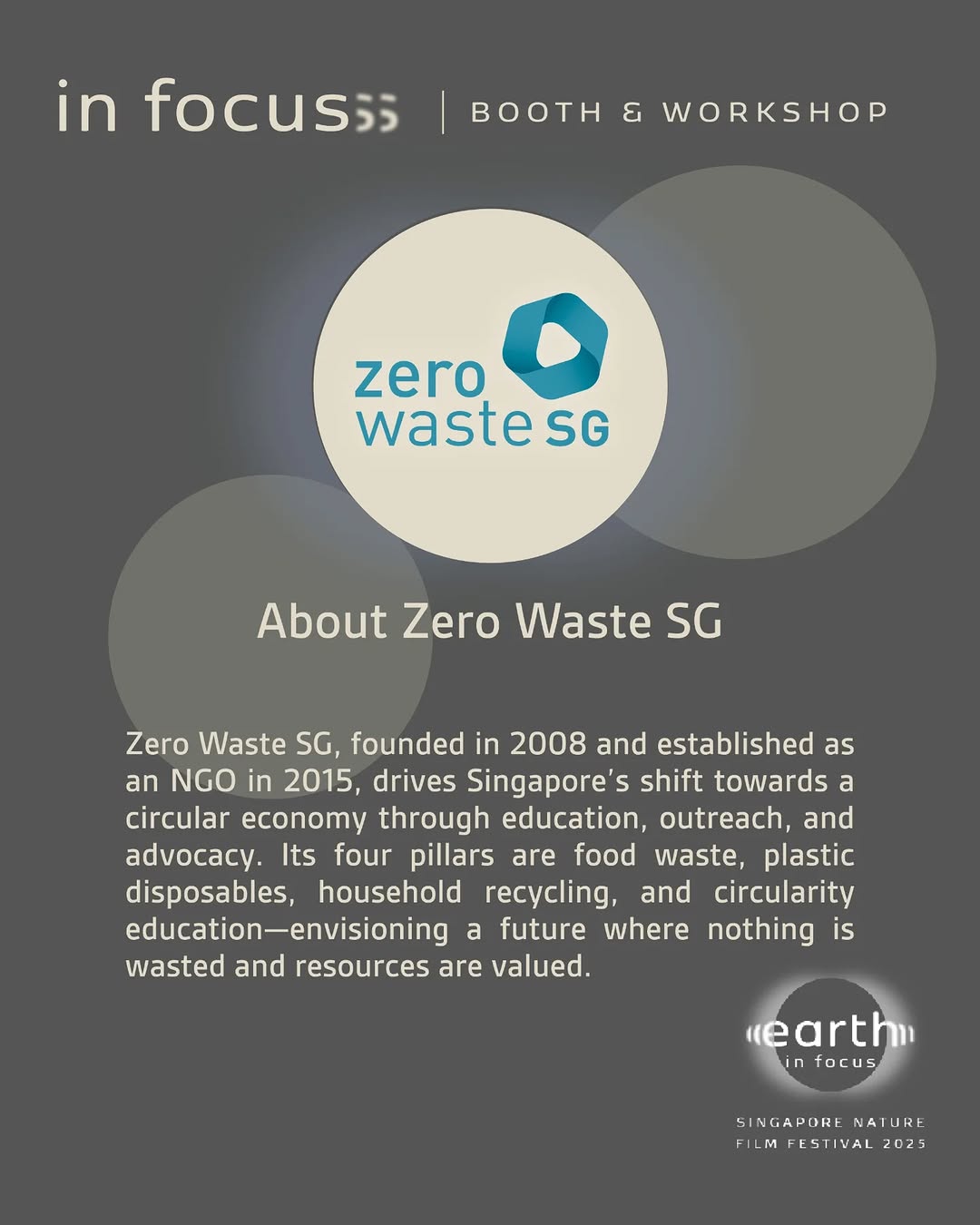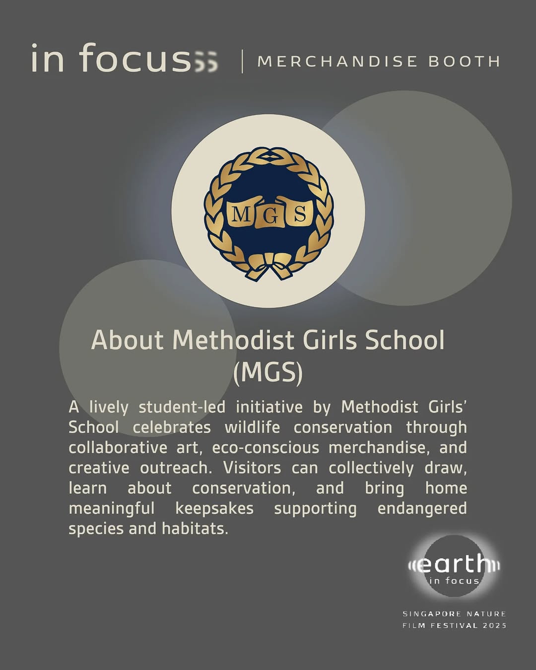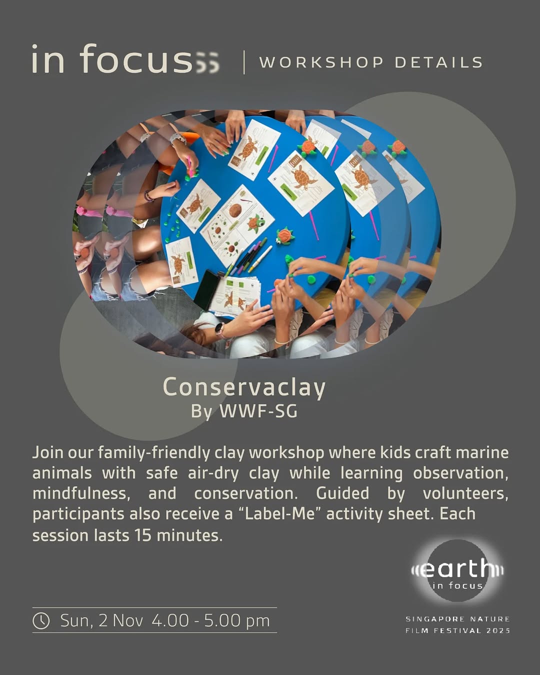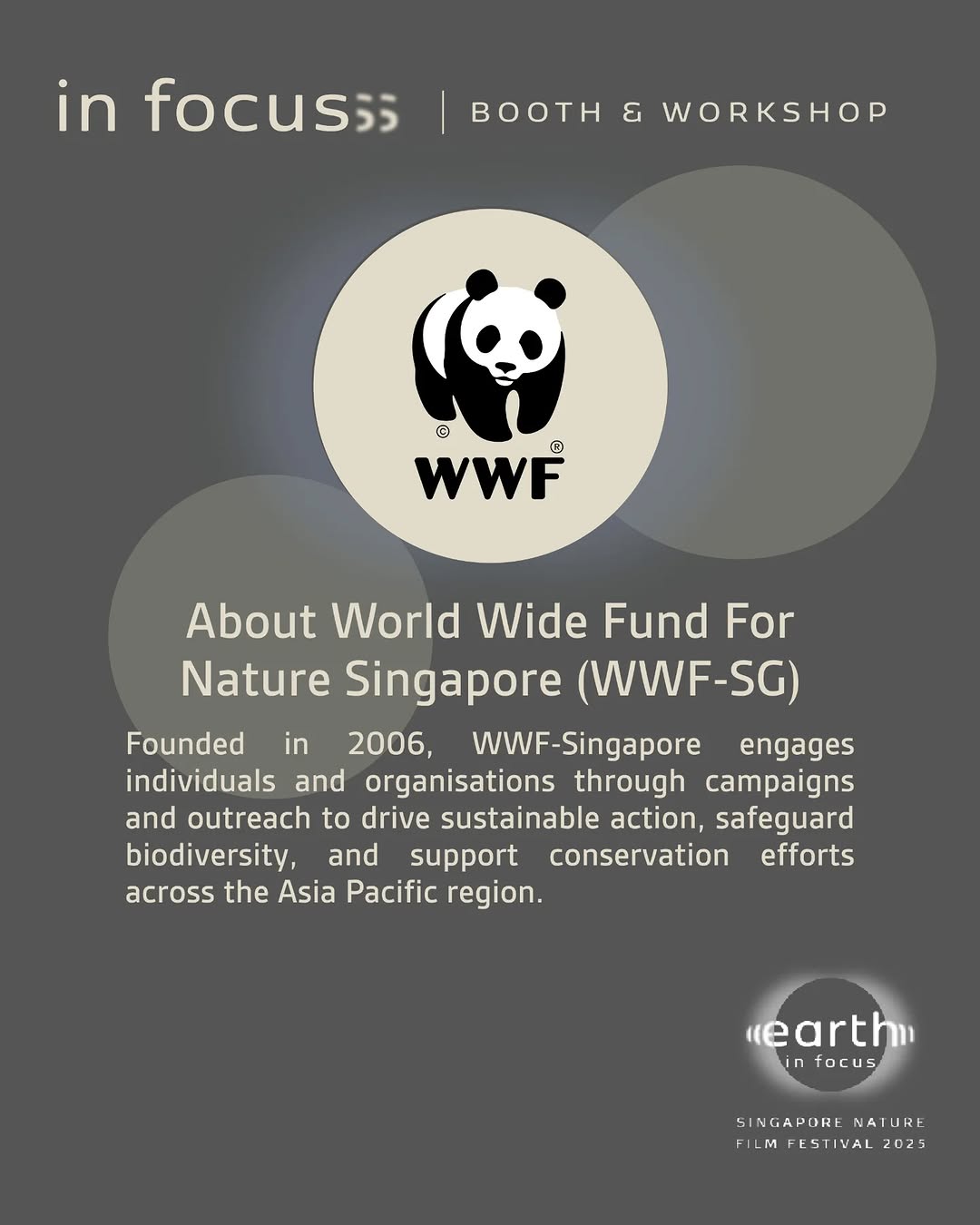 Dive deeper into nature at Earth in Focus Singapore Nature Film Festival 2025 with our second set of exciting booths and workshops! Explore conservation initiatives, join creative hands-on sessions, and take home meaningful insights and keepsakes.