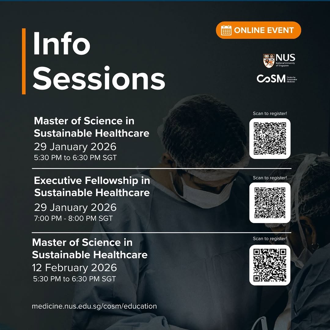 Join the Centre for Sustanable Medicine’s upcoming info sessions to learn how postgraduate training in sustainable healthcare at NUS Medicine can support your career goals!