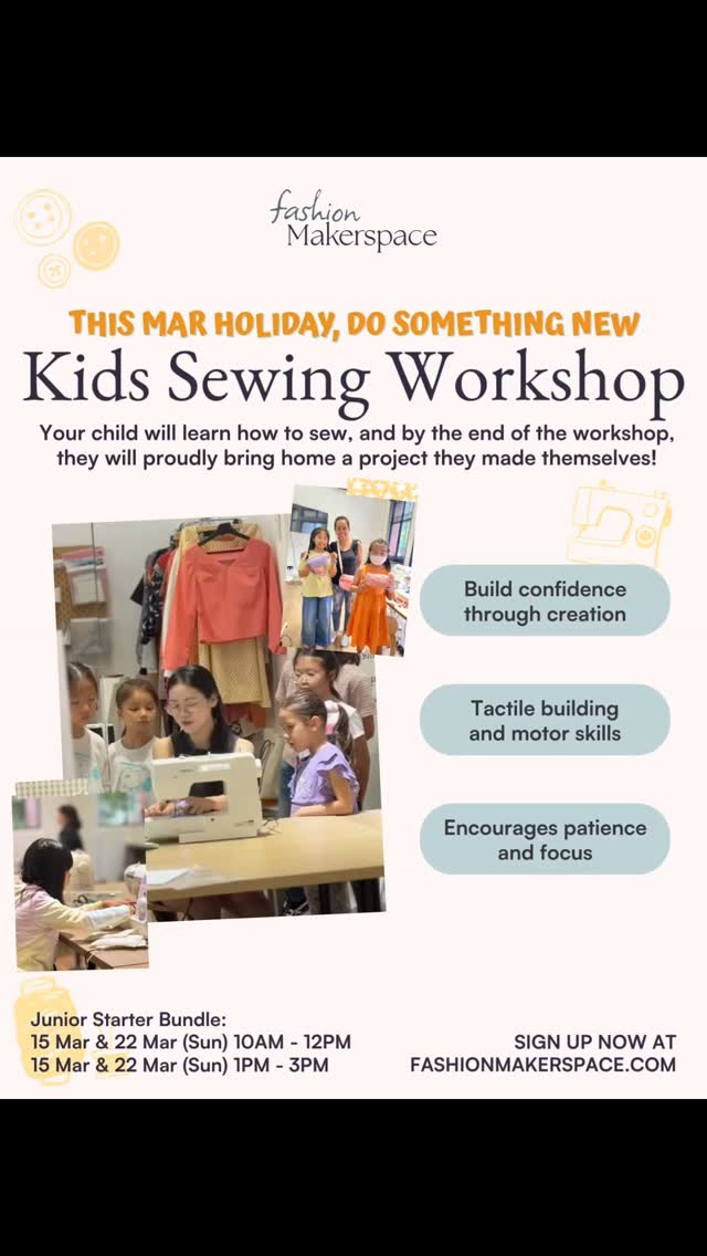 Looking for an activity for your kids to join this March holiday? Don’t miss out on our Kids Sewing Workshop!