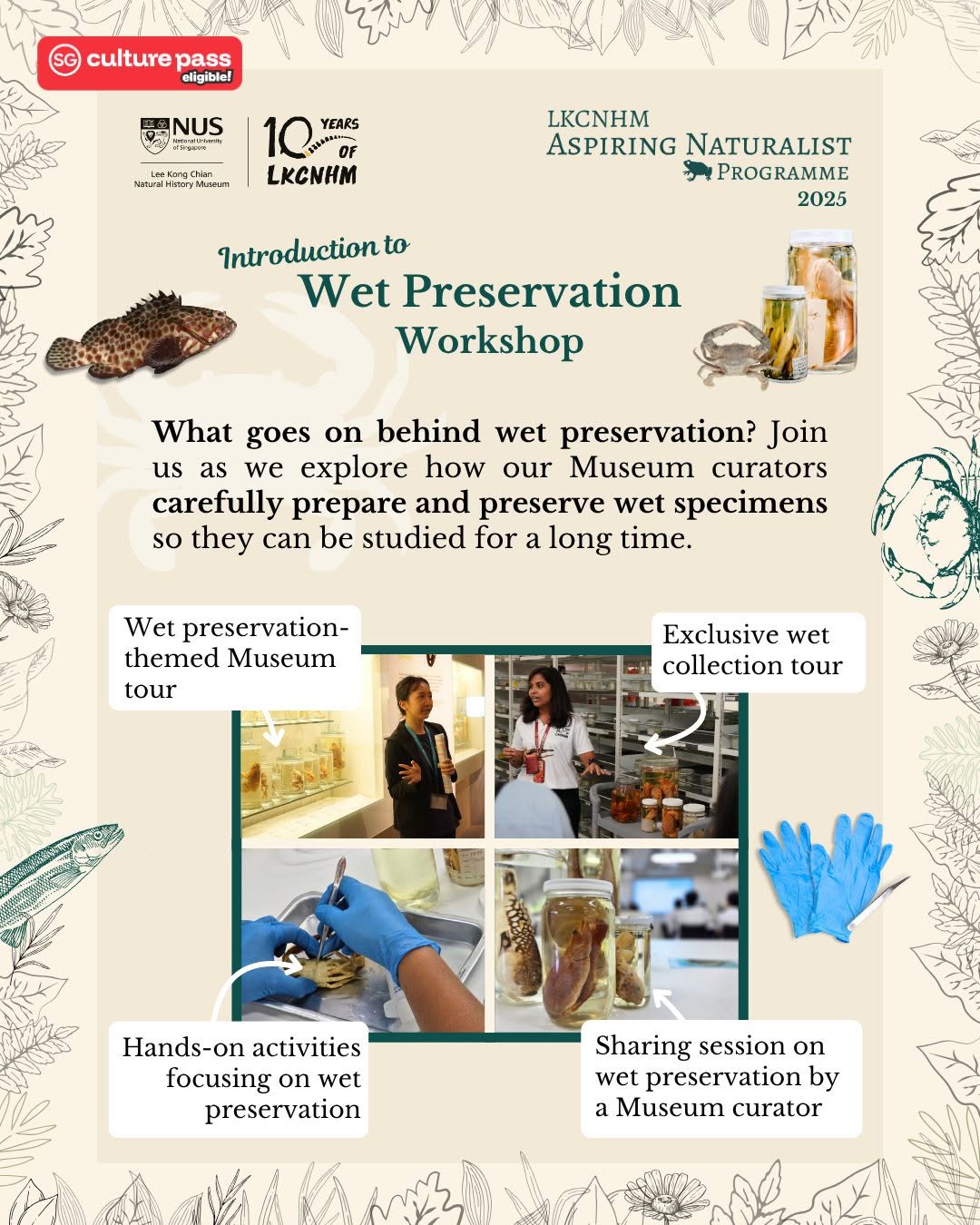 In conjunction with the Museum’s 10th Anniversary, head behind the scenes with our Aspirin Naturalist Programme- three interactive, hands-on workshops on species identification, wet preservation, and dry preservation.