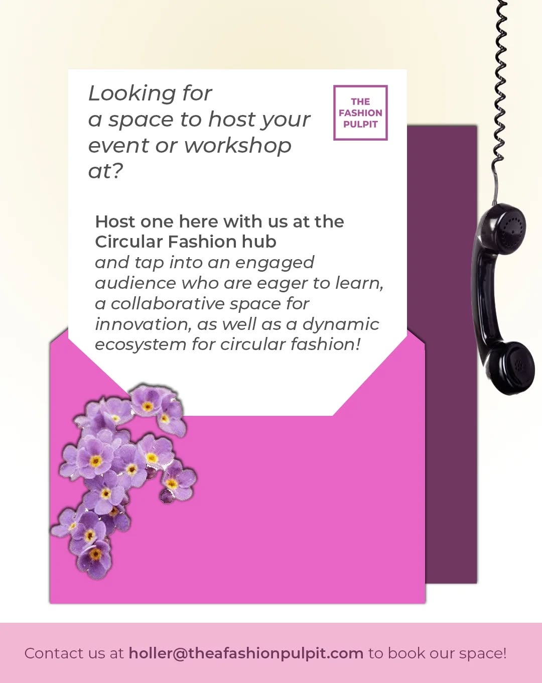 Looking for a space to host your event or workshop at? Look no Future than the circular Fashion hub, where you can host your dreamworkshoporevent at!