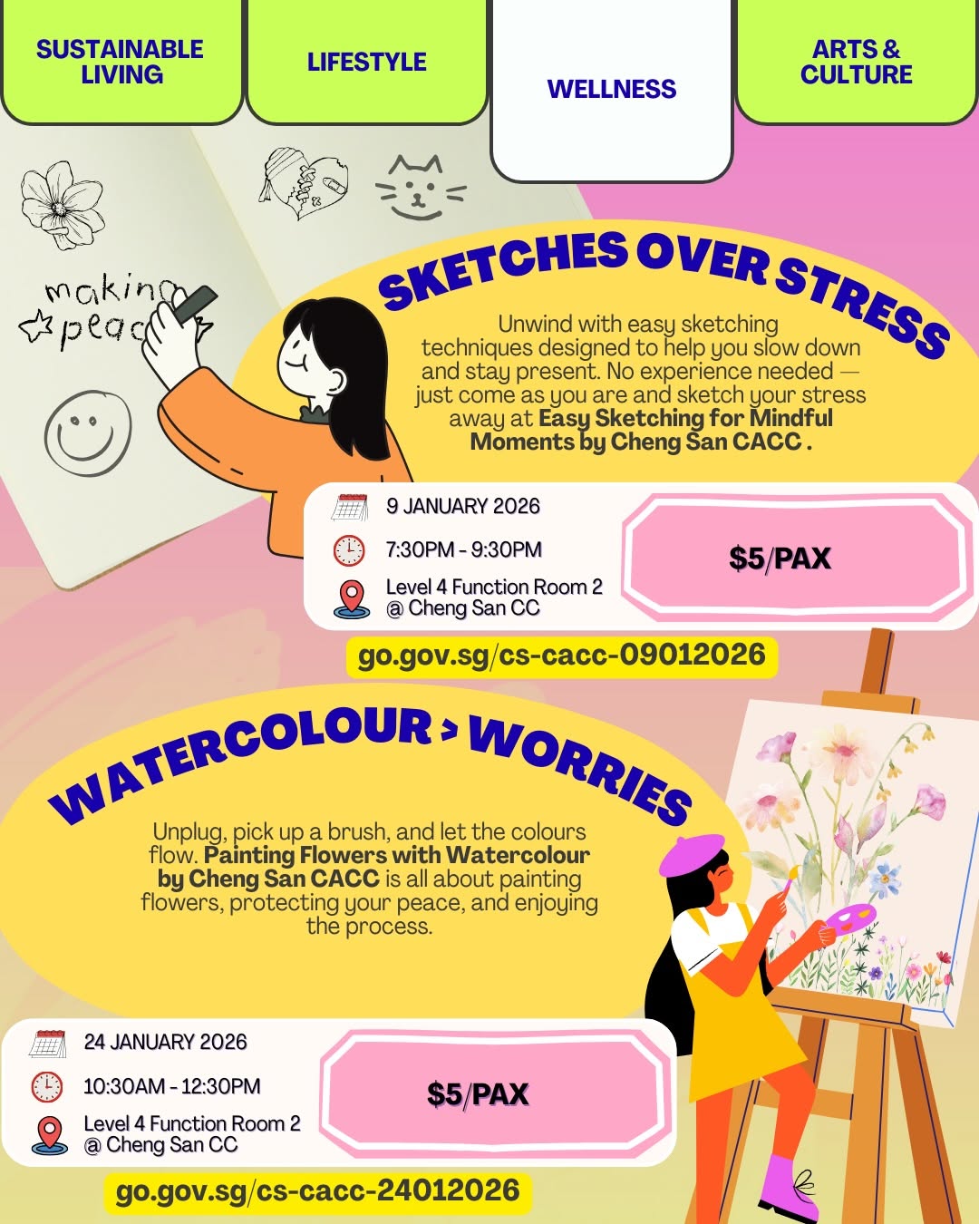 We’ve all got resolutions to pick up new skills and hobbies, put self-care first and level up our community game in 2026. So come on and explore new interest groups, courses and ways to give back with Cheng San CC!✨