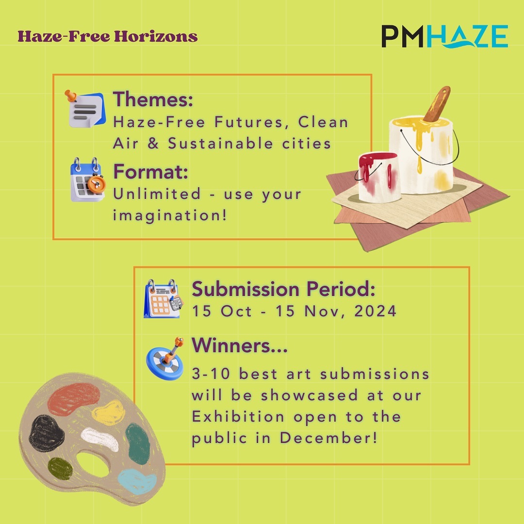 2 OPEN CALL: We are excited to announce an open call for inspired students, artists, creators, and visionaries to contribute to our upcoming exhibition: Haze-Free Horizons his exhibition seeks to explore a world free from haze pollution–imagining a future where clean air, clear skies, and sustainable living take center stage.