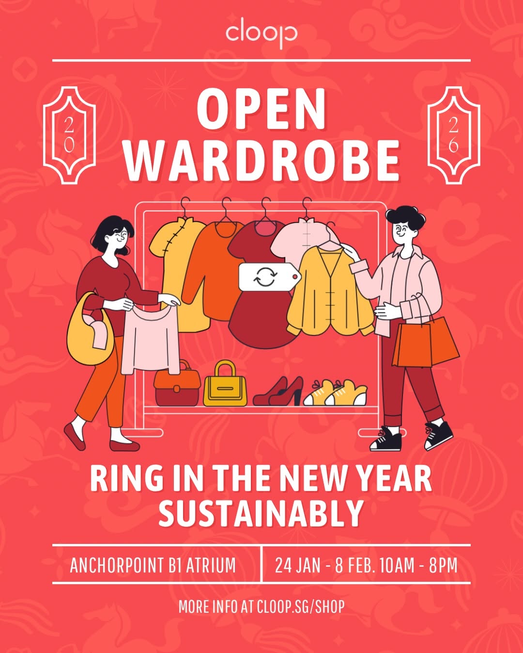 Cloop’s Open Wardrobe — CNY Edition is happening 24 Jan – 8 Feb 2026 at Anchorpoint B1 Atrium! 🧧✨