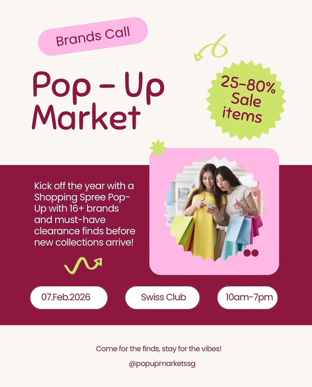 The date for Popupmarkets first event of 2026 is out ➡️ 7 February @ Swiss Club Singapore.