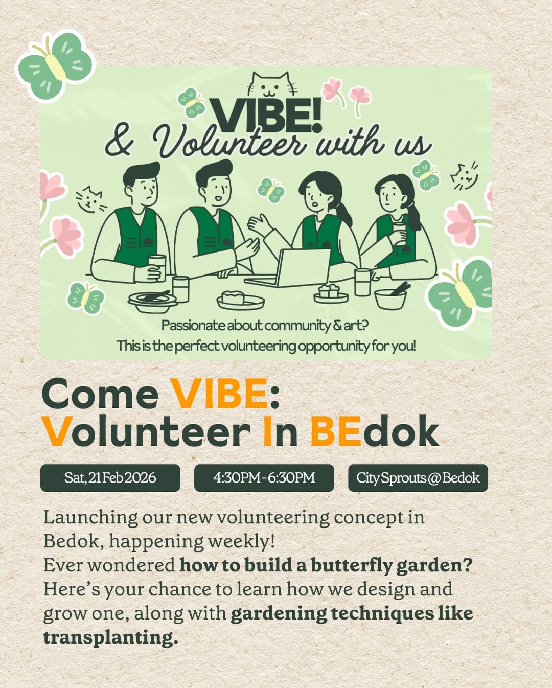 21 Feb 📍 City Sprouts Bedok | 🕓 4:30PM–6:30PM