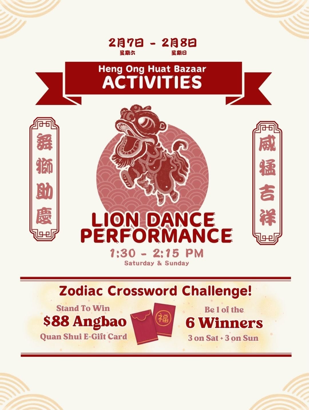 Follow zodiac clues hidden around the venue for our Zodiac Crossword Challenge. Test your luck and stand a chance to win an $88 e-gift angbao 🧧✨