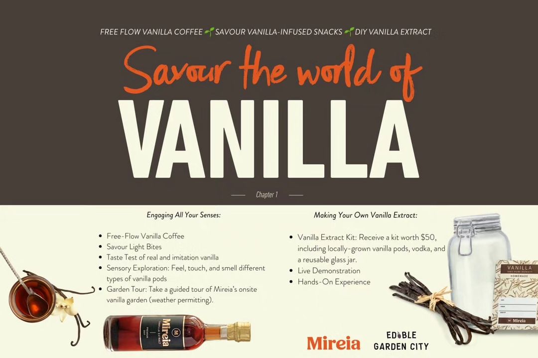 Sip on free-flow vanilla coffee and make your own vanilla extract using premium, locally-grown beans cultivated by Singapore’s own vanilla experts @mireiaforyou !