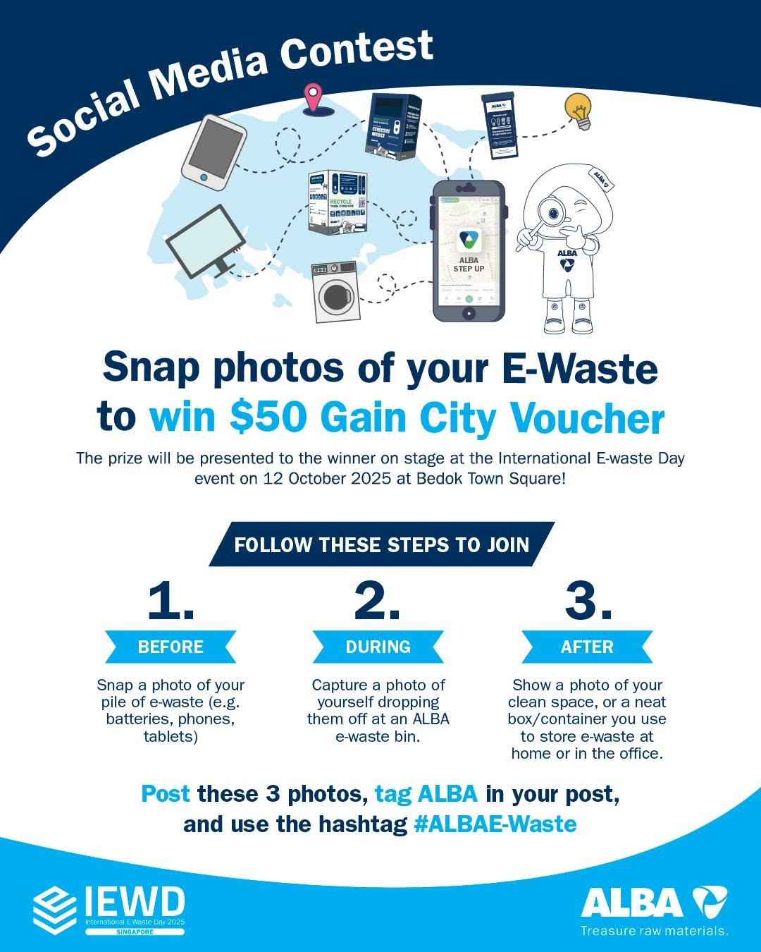 The prize will be presented to the winner on stage at the International E-waste Day event on 12 October 2025 at Bedok Town Square!