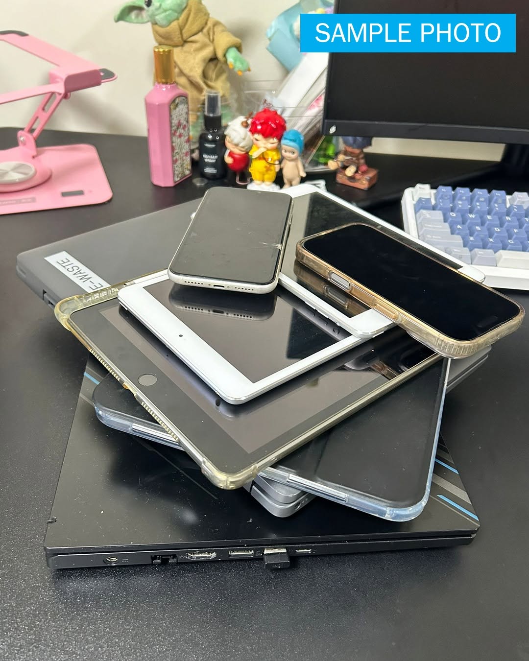 Before – Snap a photo of your pile of e-waste (batteries, phones, tablets, etc.)