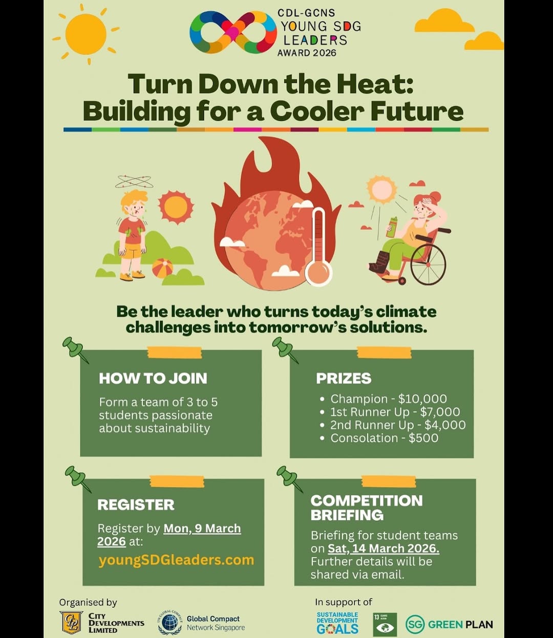 Are you ready to lead change for a cooler, greener, and more resilient world? The CDL-GCNS Young SDG Leaders Award 2026 is officially open!