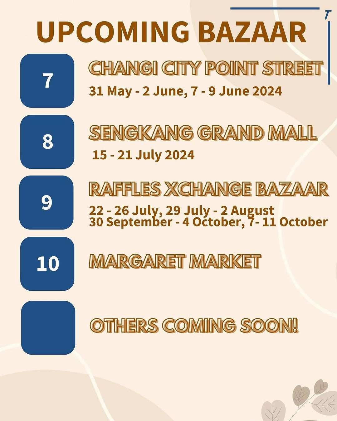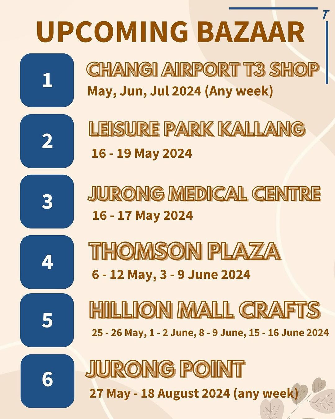 Check out our latest bazaars and POPPIN locations on our website at www.tcartel.sg/shop Jurong Point In-Shop Bazaar is the latest exciting and major event we have added into the list.