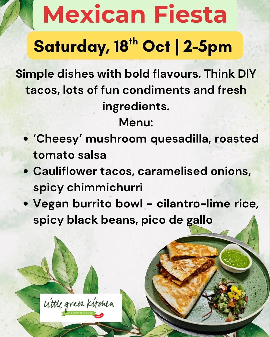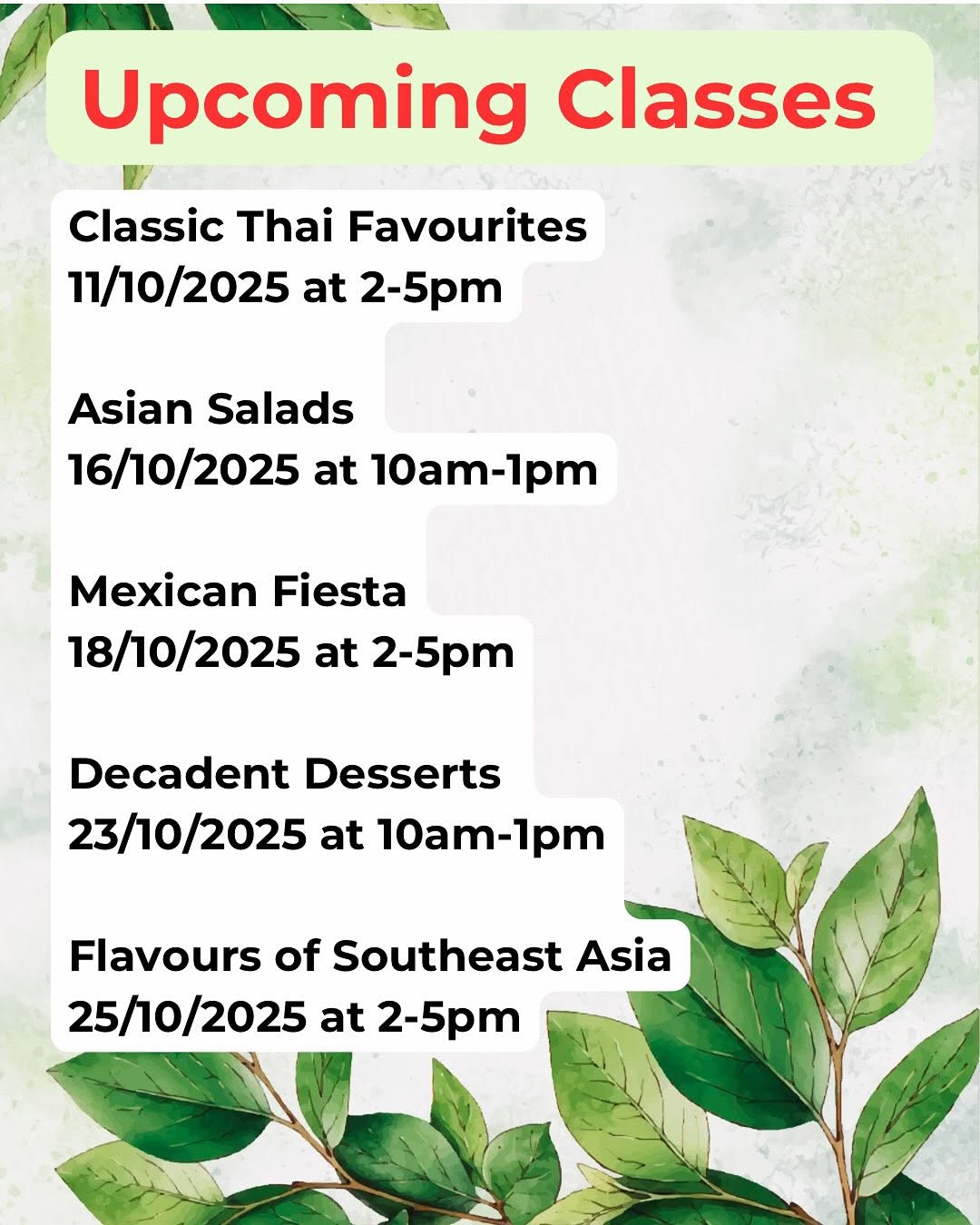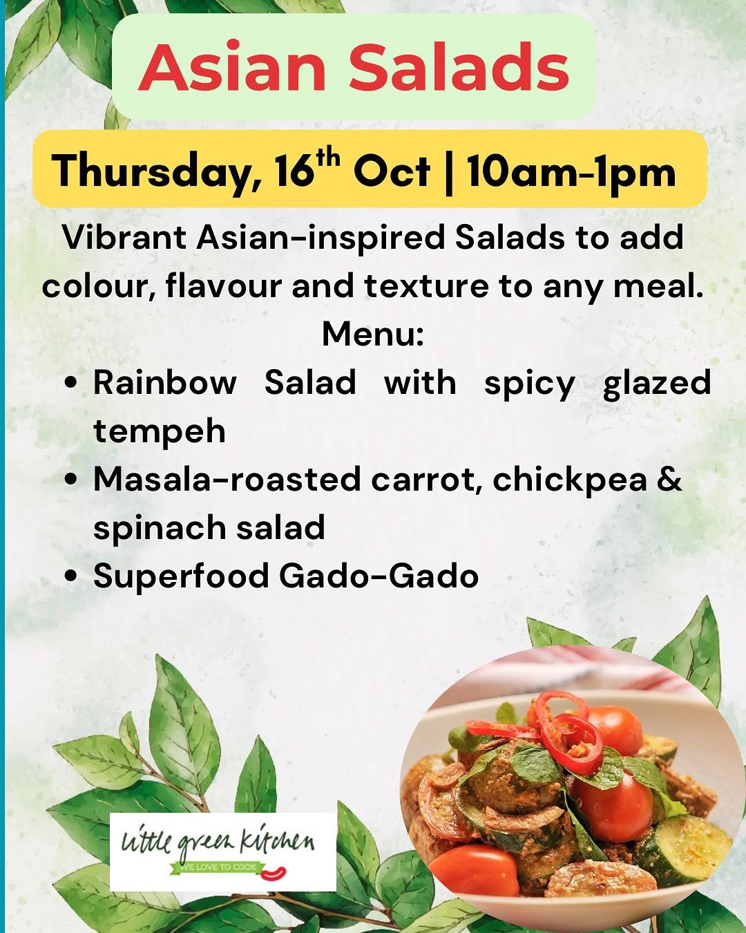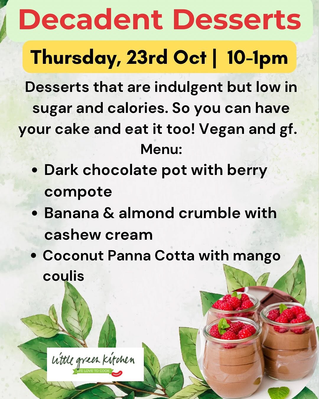 Just a little update of the classes we have lined up at Little Green Kitchen this month.