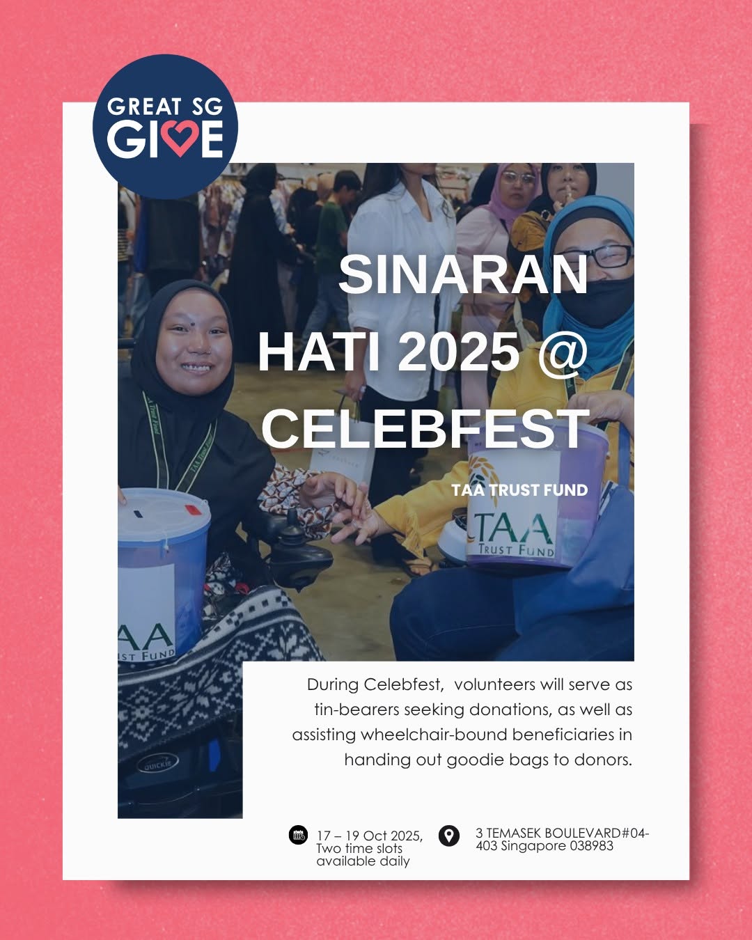⁃ Swipe to explore, then sign up through Great Singapore Give site. Link in bio,