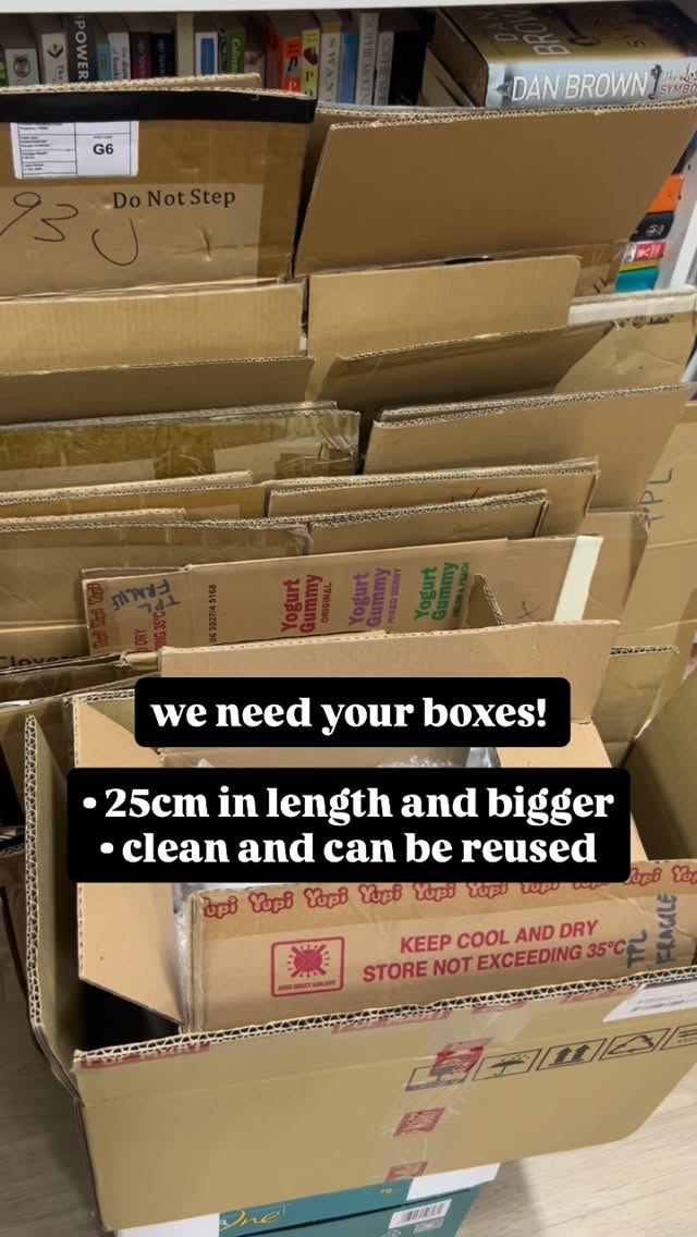 We need your help to send us a picture of the boxes you wish to donate and drop it at our office – Wcega Tower #06-78 S658065 to prevent clutter or unwanted items being donated ☺️