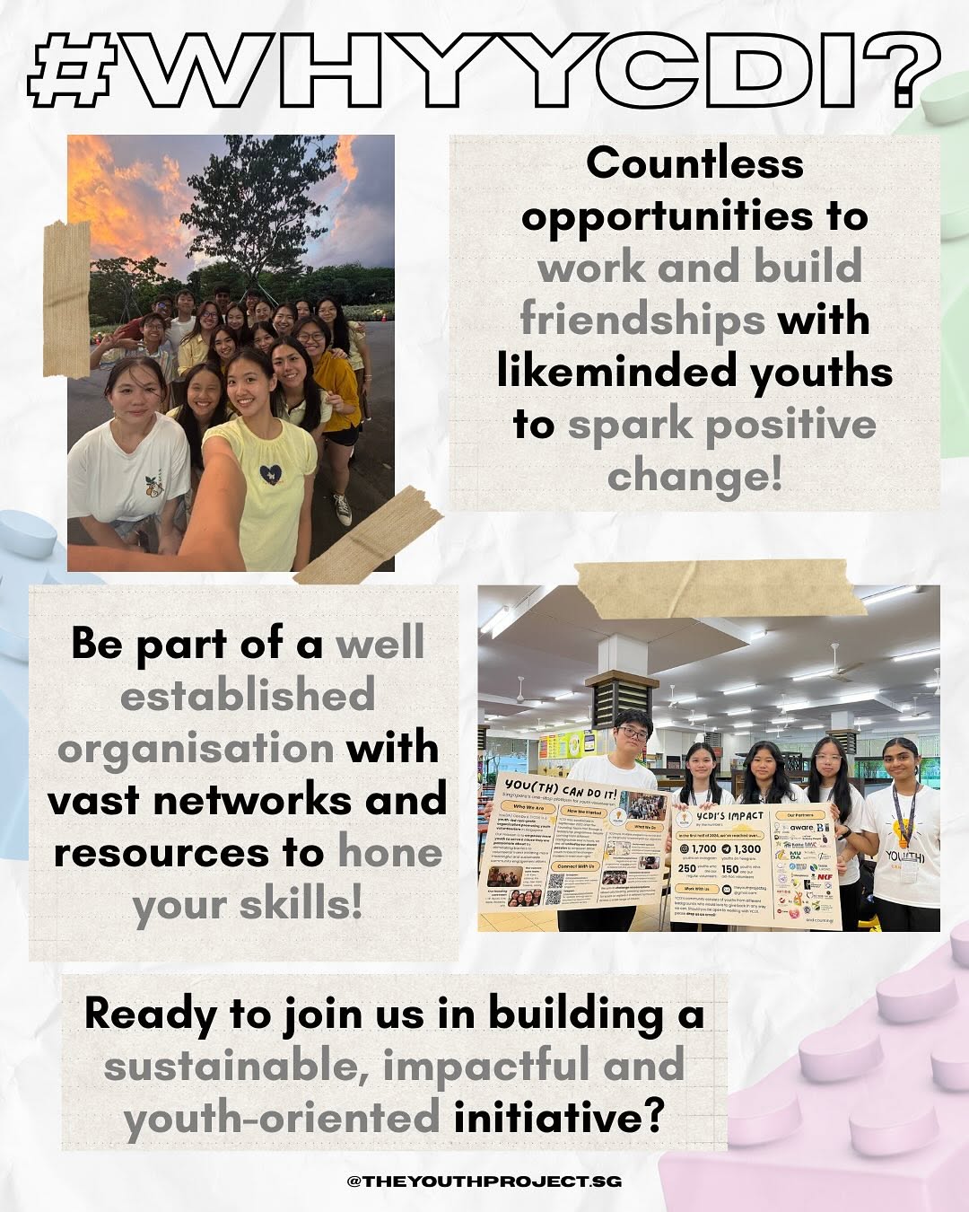 Need more info and convincing? @ Fret not, because YCDI has a series of posts lined up for you this month that will showcase the hearts behind YCDI and experiences that await you